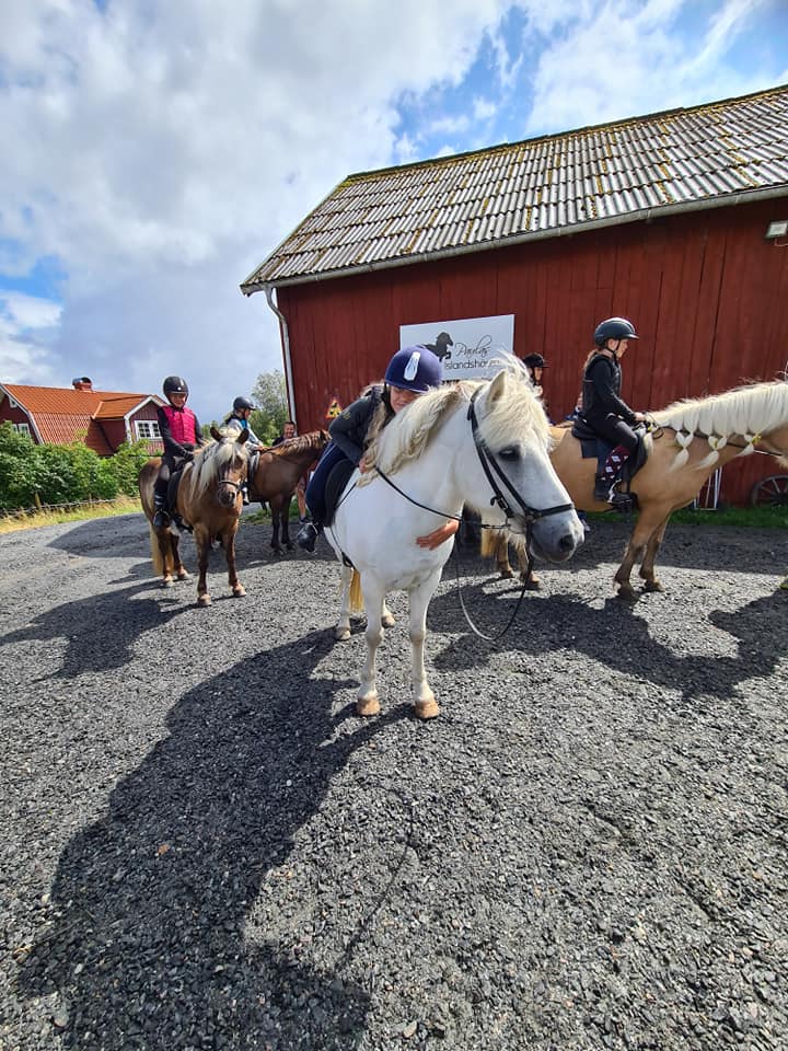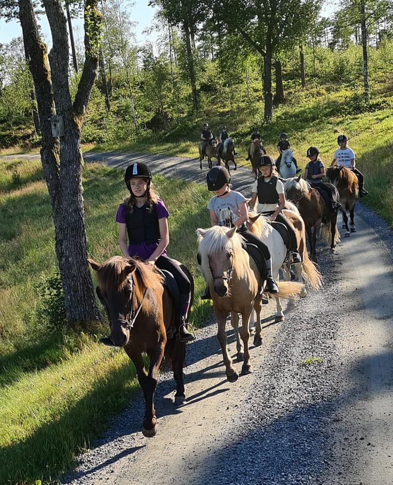 Vi kommer rida ungefär två pass per dag, antingen utetur eller i paddock, någon dag har vi även en längre tur. Under hela lägret har du en egen häst som du rider och pysslar med.