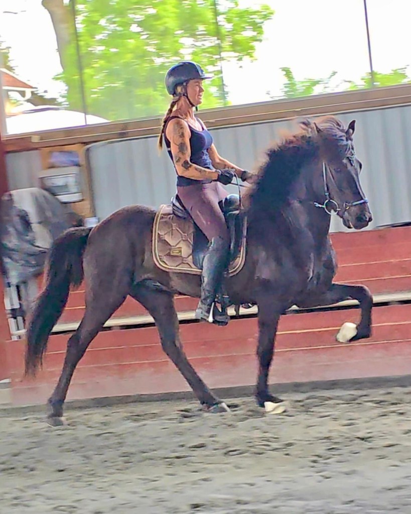 Svartur är en stor och rejäl valack. Behöver en välbalanserad och trygg ryttare. Lätt för tölt och fin galopp.